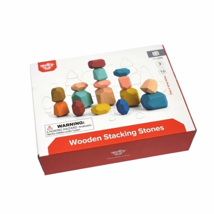 Αυτό το ξύλινο παιχνίδι στοίβαξης είναι ένα δημιουργικό και πρωτότυπο παιχνίδι ισορροπίας. Πιο συγκεκριμένα, περιέχει 16 ξύλινους λίθους σε διαφορετικά μεγέθη και χρώματα που μπορούν να τοποθετηθούν όπως επιθυμεί το παιδί. Μέσω αυτού του παιχνιδιού τα μικρά παιδιά μαθαίνουν τη λογική των μεγεθών και τα χρώματα, ενώ παράλληλα αναπτύσσουν την ικανότητα επίλυσης προβλημάτων και τη λογική σκέψη. Οι λίθοι έχουν πολλαπλές επίπεδες πλευρές που τους επιτρέπουν να στοιβάζονται και να ισορροπούν ο ένας πάνω στον άλλο. Με αυτόν τον τρόπο το παιδί αναπτύσσει τις βασικές μαθηματικές του δεξιότητες με διασκεδαστικό τρόπο, μαθαίνει την έννοια της ακολουθίας και τη συσχέτιση μεγεθών. Τέλος, ενθαρρύνεται η ανάπτυξη των λεπτών κινητικών δεξιοτήτων του και οι δεξιότητες της λογικής και στρατηγικής σκέψης. Η προσοχή του κατευθύνεται προς ένα συγκεκριμένο στόχο που με σωστή τακτική, καταφέρνει ένα επιτυχές αποτέλεσμα δηλαδή τη δημιουργία μιας σταθερής κατασκευής σύμφωνα με το κριτήριο της επιλογής του. Το ξύλινο παιχνίδι στοίβαξης λίθων αποτελείται από 16 τεμάχια.